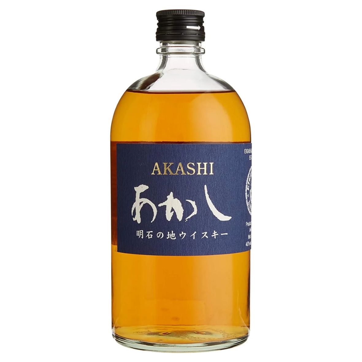 Japanse whisky Akashi Blue blended is een gelimiteerde release Japanse blended whisky afkomstig van de Eigashima Shuzo (White Oak) distilleerderij, gebouwd in 1984 in de stad Akashi op het eiland Honshu.