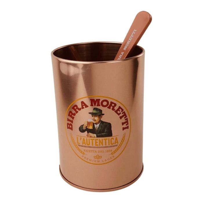Birra Moretti Afschuimbak Koper – Inclusief Originele Bierafschuimer Spatel