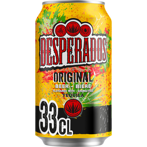 Desperados werd eind jaren ’90 gelanceerd als ’s werelds eerste bier met tequilasmaak. Het combineert de frisheid van een licht blond bier met de kruidige kick van tequila-aroma. Het resultaat? Een uitgesproken smaak die perfect is voor feesten, festivals en zwoele avonden. De 33cl blikjes zijn handig, snel gekoeld en makkelijk mee te nemen.