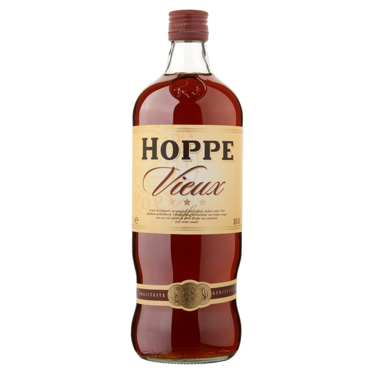 Hoppe is een vertrouwd Nederlands merk dat al generaties lang staat voor kwaliteit en traditie. Hoppe Vieux is een geliefde vieux (ook wel Hollandse cognac genoemd) met een kenmerkende volle smaak en zachte afdronk. Deze amberkleurige drank wordt gemaakt op basis van neutrale alcohol, gearomatiseerd met kruidenextracten, karamel en eikenhouttonen, wat zorgt voor een karaktervolle en toegankelijke ervaring.