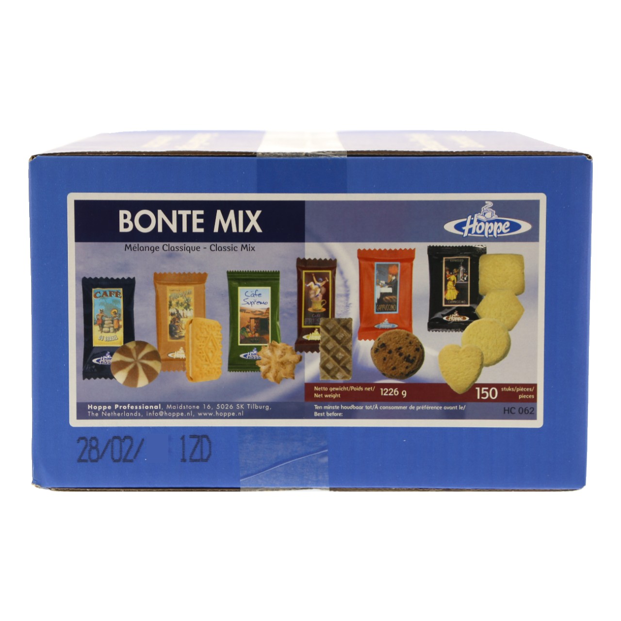 De Hoppe Bonte Mix Classic is dé vertrouwde koekjesselectie voor bij de koffie. Deze doos met 150 individueel verpakte koekjes bevat een gevarieerd assortiment van krokante, luchtige en lichtzoete koekjes. Ideaal voor kantoren, vergaderruimtes, horeca, wachtruimtes of als extraatje bij de koffie of thee.