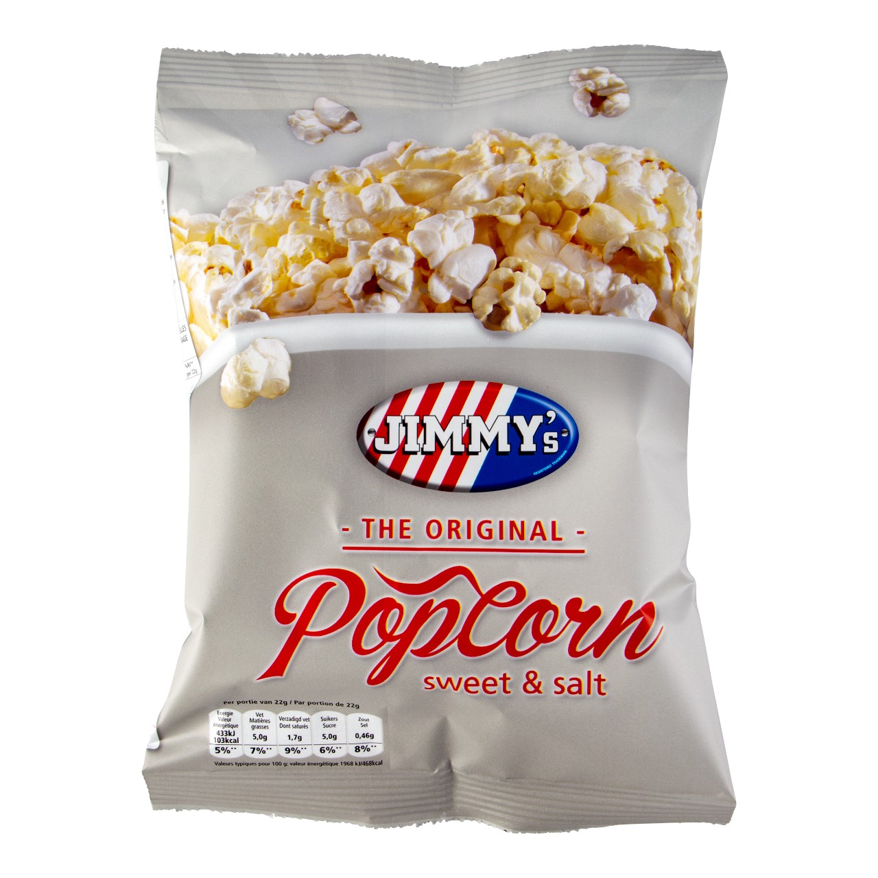 Jimmy’s Sweet & Salt Popcorn Mini Zakjes – Doos 21 x 27 Gram