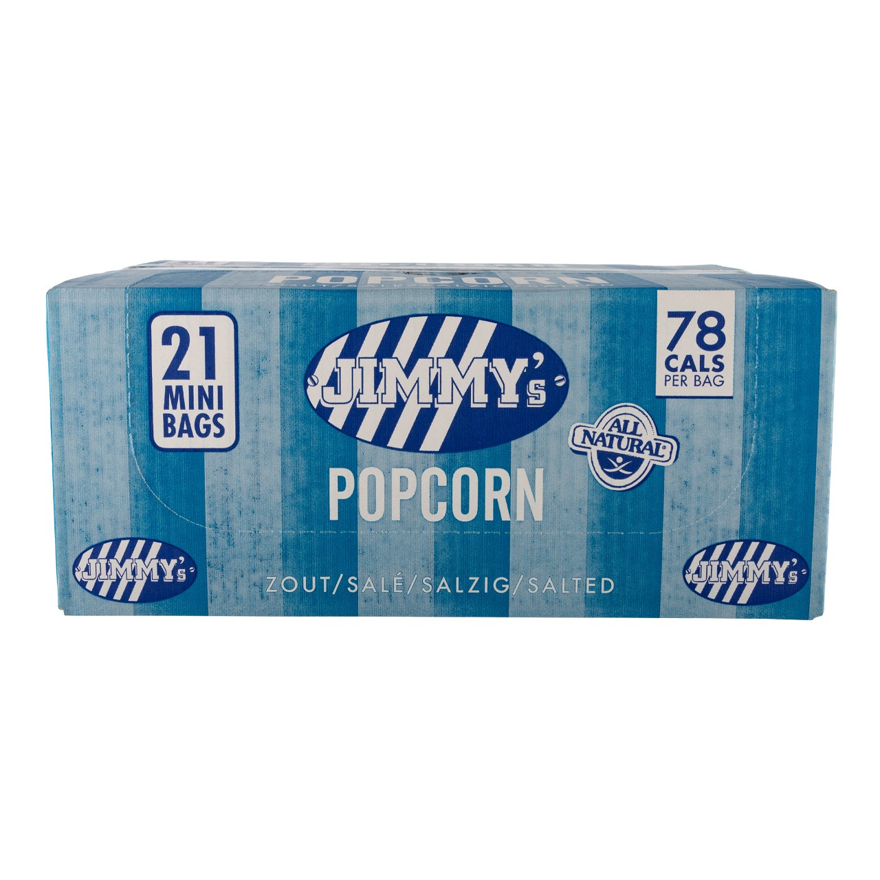Jimmy’s popcorn wordt gemaakt van niet-genetisch gemodificeerde mais, zonder olie gepoft en glutenvrij. Door het kleine formaat is het ideaal voor school, werk, vending of sport. De verpakking is hygiënisch en makkelijk mee te nemen, en de inhoud is precies goed voor een verantwoorde pauze.