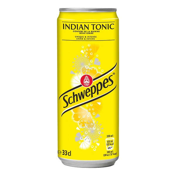 Ingrediënten Schweppes Indian Tonic Blikjes 33cl: koolzuurhoudend water, suiker, voedingszuur: citroenzuur, natuurlijke aroma’s, aroma: kinine, zoetstoffen: acesulfaam K en sucralose.