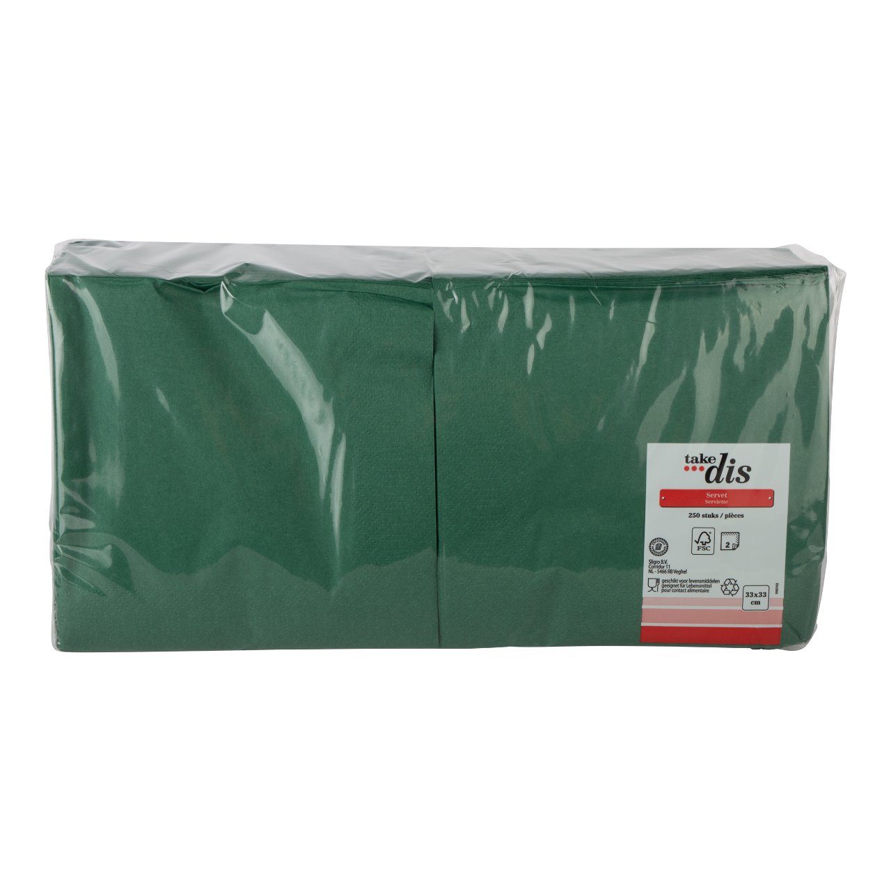 Op zoek naar praktische én stijlvolle servetten voor je zaak of evenement? Bestel het pak met 125 groene servetten 33x33cm – 2-laags kwaliteit van Take Dis nu via goedkoopdrank.nl – snel geleverd en perfect geprijsd voor de horeca.